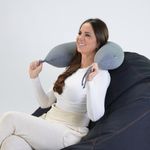 Feita com tecido de poliamida e elastano e enchimento de micropérolas de EPS (poliestireno expandido), esse é um produto prático e multifuncional que pode ser usado como almofada de viagem (para o pescoço) ou travesseiro. Além disso, também pode ser usado como almofada de amamentação e funciona como um apoio para o bebê.