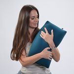 Seu toque suave proporciona bem-estar imediato. enquanto o enchimento de micropérolas de poliestireno se molda ao corpo. acompanhando os movimentos e garantindo conforto leve e envolvente.